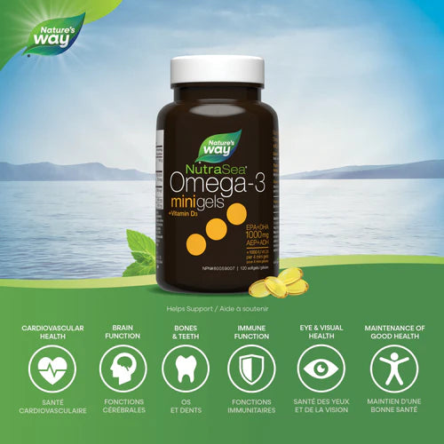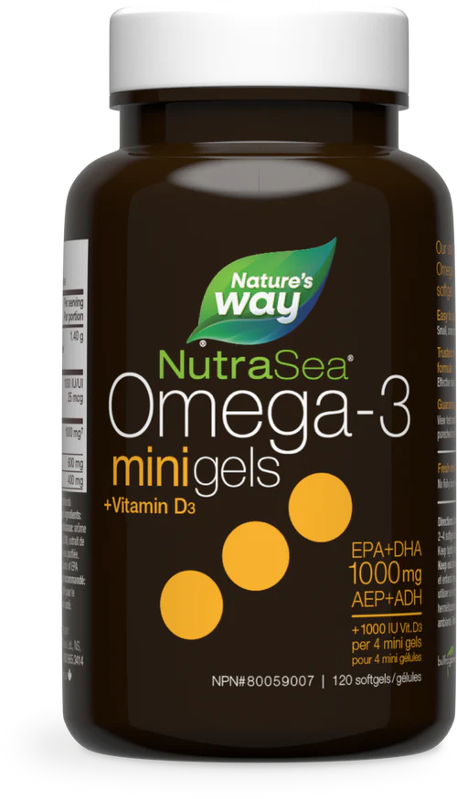 NutraSea+D premium quality omega-3 mini gels are easy to swallow and have a fresh mint flavour and no fishy burp-back.